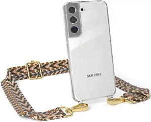 Handykette - Verstellbares Taschenband kompatibel mit Galaxy S22 5G, Schulterriemen, Handykordel mit Silikon Hülle, Umhängetasche, Braun Gold