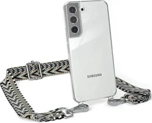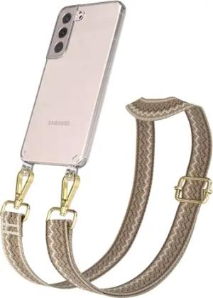 Handykette - Verstellbares Taschenband kompatibel mit Galaxy S22 5G, Schulterriemen, Handykordel mit Silikon Hülle, Umhängetasche, Beige Braun Gold