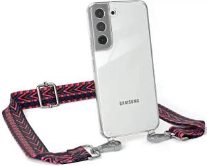 Handykette - Verstellbares Taschenband kompatibel mit Galaxy S22 5G, Schulterriemen, Handykordel mit Silikon Hülle, Umhängetasche, Beere Pink Silber
