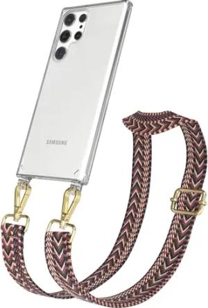 Handykette - Verstellbares Taschenband kompatibel mit Galaxy S22 Ultra 5G, Schulterriemen, Handykordel mit Silikon Hülle, Umhängetasche, Beere Pink Gold