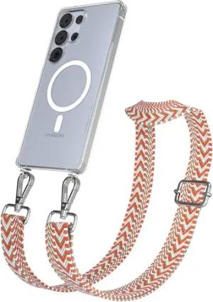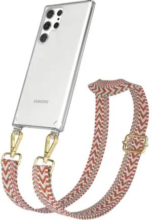 Handykette - Verstellbares Taschenband kompatibel mit Galaxy S22 Ultra 5G, Schulterriemen, Handykordel mit Silikon Hülle, Umhängetasche, Orange Grün Gold