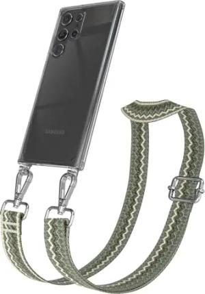 Handykette - Verstellbares Taschenband kompatibel mit Galaxy S22 Ultra 5G, Schulterriemen, Handykordel mit Silikon Hülle, Umhängetasche, Grün Beige Silber