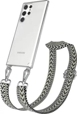 Handykette - Verstellbares Taschenband kompatibel mit Galaxy S22 Ultra 5G, Schulterriemen, Handykordel mit Silikon Hülle, Umhängetasche, Grau Schwarz Silber