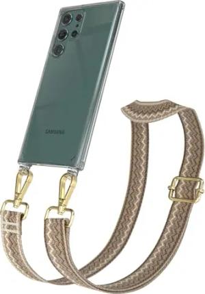 Handykette - Verstellbares Taschenband kompatibel mit Galaxy S22 Ultra 5G, Schulterriemen, Handykordel mit Silikon Hülle, Umhängetasche, Hell Braun Braun Gold