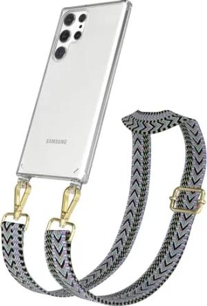 Handykette - Verstellbares Taschenband kompatibel mit Galaxy S22 Ultra 5G, Schulterriemen, Handykordel mit Silikon Hülle, Umhängetasche, Blau Rot Gold