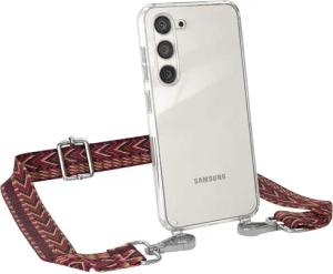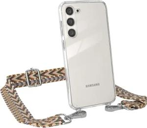 Handykette - Verstellbares Taschenband kompatibel mit Galaxy S23 Plus, Schulterriemen, Handykordel mit Silikon Hülle, Umhängetasche, Braun Silber