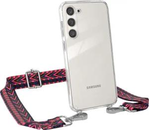 Handykette - Verstellbares Taschenband kompatibel mit Galaxy S23 Plus, Schulterriemen, Handykordel mit Silikon Hülle, Umhängetasche, Pink Blau Silber