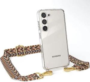 Handykette - Verstellbares Taschenband kompatibel mit Galaxy S23, Schulterriemen, Handykordel mit Silikon Hülle, Umhängetasche, Braun Gold