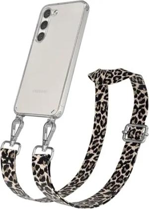 Handykette - Verstellbares Taschenband kompatibel mit Galaxy S23, Schulterriemen, Handykordel mit Silikon Hülle, Umhängetasche, Leo - Schwarz Beige Silber