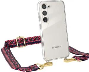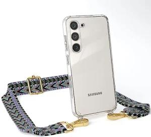 Handykette - Verstellbares Taschenband kompatibel mit Galaxy S23, Schulterriemen, Handykordel mit Silikon Hülle, Umhängetasche, Pink Blau Gold