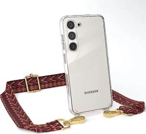 Handykette - Verstellbares Taschenband kompatibel mit Galaxy S23, Schulterriemen, Handykordel mit Silikon Hülle, Umhängetasche, Rot Braun Gold
