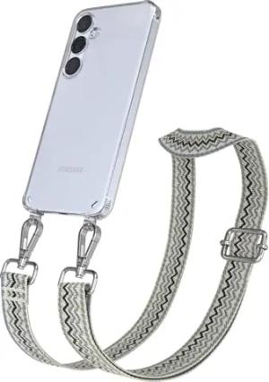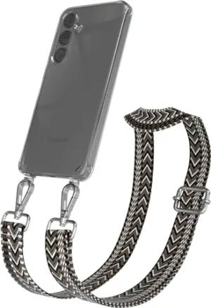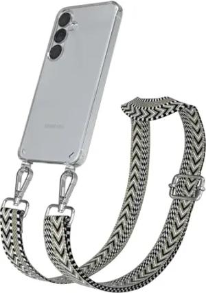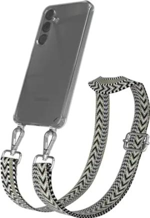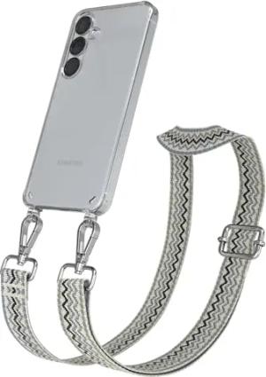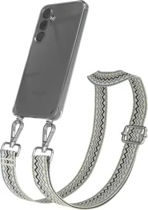 Handykette - Verstellbares Taschenband kompatibel mit Galaxy S24 Plus, Schulterriemen, Handykordel mit Silikon Hülle, Umhängetasche, Grau Schwarz Silber
