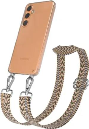Handykette - Verstellbares Taschenband kompatibel mit Galaxy S24 Plus, Schulterriemen, Handykordel mit Silikon Hülle, Umhängetasche, Braun Silber