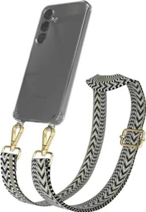 Handykette - Verstellbares Taschenband kompatibel mit Galaxy S24 Plus, Schulterriemen, Handykordel mit Silikon Hülle, Umhängetasche, Leo - Schwarz Beige Gold