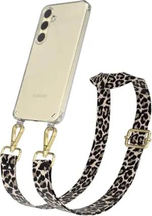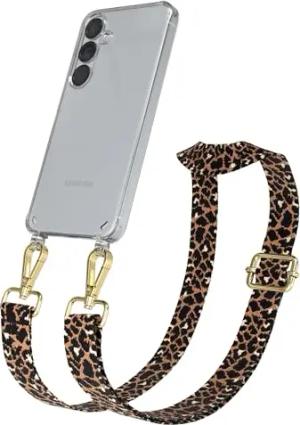 Handykette - Verstellbares Taschenband kompatibel mit Galaxy S25, Schulterriemen, Handykordel mit Silikon Hülle, Umhängetasche, Leo - Schwarz Braun Gold