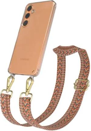 Handykette - Verstellbares Taschenband kompatibel mit Galaxy A56, Schulterriemen, Handykordel mit Silikon Hülle, Umhängetasche, Rot Braun Gold