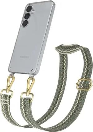Handykette - Verstellbares Taschenband kompatibel mit Galaxy S24 Plus, Schulterriemen, Handykordel mit Silikon Hülle, Umhängetasche, Grün Beige Gold