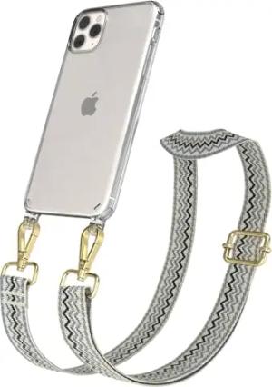 Handykette - Verstellbares Taschenband kompatibel mit iPhone 11 Pro Max, Schulterriemen, Handykordel mit Silikon Hülle, Umhängetasche, Beige Blau Gold