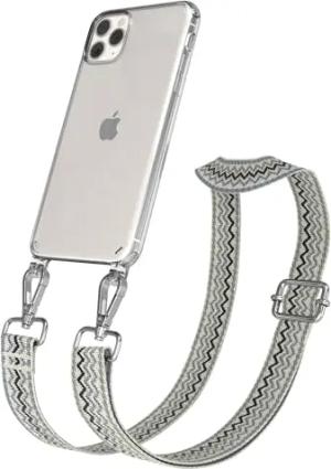 Handykette - Verstellbares Taschenband kompatibel mit iPhone 11 Pro Max, Schulterriemen, Handykordel mit Silikon Hülle, Umhängetasche, Beige Blau Silber