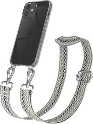 Handykette - Verstellbares Taschenband kompatibel mit iPhone 12 Mini, Schulterriemen, Handykordel mit Silikon Hülle, Umhängetasche, Beige Blau Silber