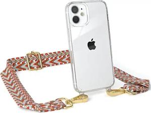 Handykette - Verstellbares Taschenband kompatibel mit iPhone 12 Mini, Schulterriemen, Handykordel mit Silikon Hülle, Umhängetasche, Blau Rot Gold