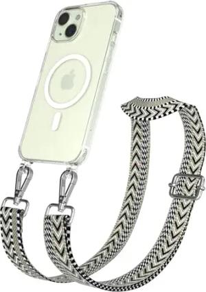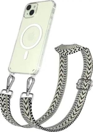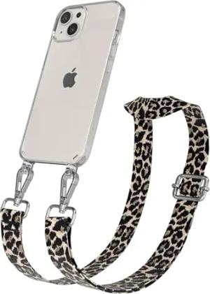 Handykette - Verstellbares Taschenband kompatibel mit iPhone 13, Schulterriemen, Handykordel mit Silikon Hülle, Umhängetasche, Leo - Schwarz Beige Silber