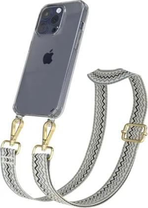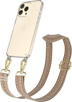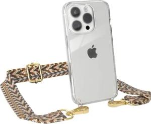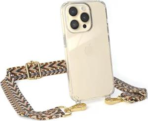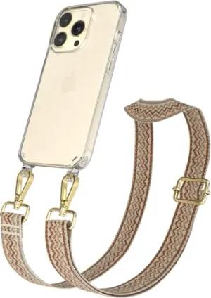 Handykette - Verstellbares Taschenband kompatibel mit iPhone 14 Pro, Schulterriemen, Handykordel mit Silikon Hülle, Umhängetasche, Beige Braun Gold
