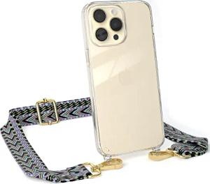 Handykette - Verstellbares Taschenband kompatibel mit iPhone 14 Pro Max, Schulterriemen, Handykordel mit Silikon Hülle, Umhängetasche, Pink Blau Gold