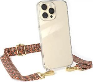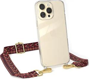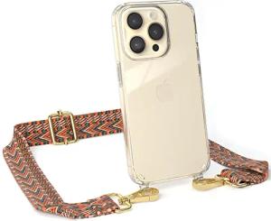 Handykette - Verstellbares Taschenband kompatibel mit iPhone 14 Pro Max, Schulterriemen, Handykordel mit Silikon Hülle, Umhängetasche, Rot Braun Gold