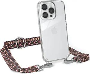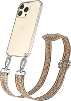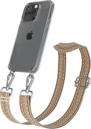 Handykette - Verstellbares Taschenband kompatibel mit iPhone 14 Pro, Schulterriemen, Handykordel mit Silikon Hülle, Umhängetasche, Beige Braun Silber