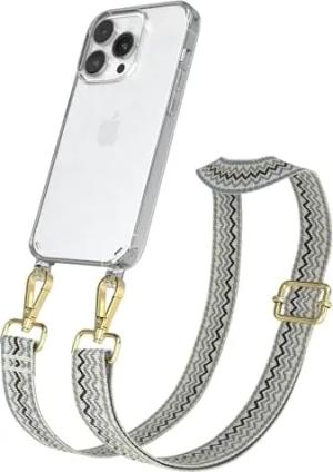 Handykette - Verstellbares Taschenband kompatibel mit iPhone 14 Pro, Schulterriemen, Handykordel mit Silikon Hülle, Umhängetasche, Grau Schwarz Silber