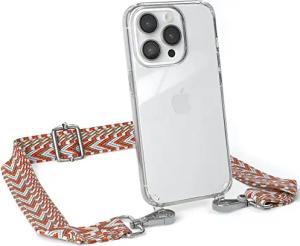 Handykette - Verstellbares Taschenband kompatibel mit iPhone 16 Pro, Schulterriemen, Handykordel mit Silikon Hülle, Umhängetasche, Orange Grün Silber