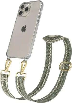 Handykette - Verstellbares Taschenband kompatibel mit iPhone 15 Pro Max, Schulterriemen, Handykordel mit Silikon Hülle, Umhängetasche, Grün Beige Gold