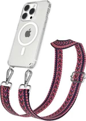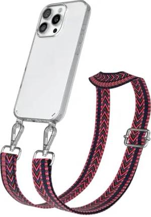 Handykette - Verstellbares Taschenband kompatibel mit iPhone 16 Pro, Schulterriemen, Handykordel mit Silikon Hülle, Umhängetasche, Pink Blau Silber