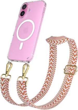 Handykette - Verstellbares Taschenband kompatibel mit iPhone 16 Pro, Schulterriemen, Handykordel mit Silikon Hülle, Qi Charging kompatibel, Umhängetasche, Beere Pink Gold