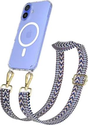 Handykette - Verstellbares Taschenband kompatibel mit iPhone 16, Schulterriemen, Handykordel mit Silikon Hülle, Qi Charging kompatibel, Umhängetasche, Blau Rot Gold