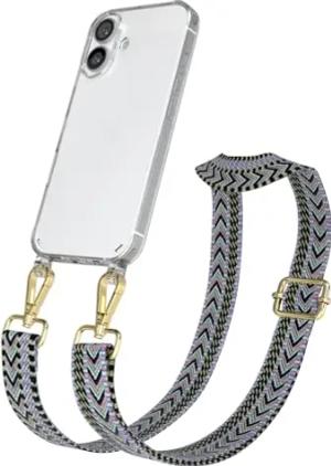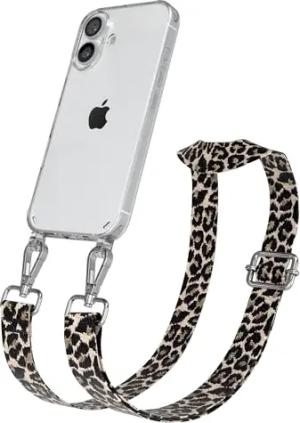 Handykette - Verstellbares Taschenband kompatibel mit iPhone 16, Schulterriemen, Handykordel mit Silikon Hülle, Umhängetasche, Leo - Schwarz Beige Silber