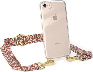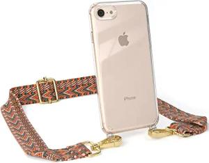 Handykette - Verstellbares Taschenband kompatibel mit iPhone SE (2022/2020) / iPhone 8/7, Schulterriemen, Handykordel mit Silikon Hülle, Umhängetasche, Rot Braun Gold