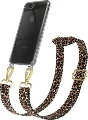 Handykette - Verstellbares Taschenband kompatibel mit iPhone SE (2022/2020) / iPhone 8/7, Schulterriemen, Handykordel mit Silikon Hülle, Umhängetasche, Leo - Schwarz Braun Gold