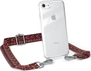 Handykette - Verstellbares Taschenband kompatibel mit iPhone SE (2022/2020) / iPhone 8/7, Schulterriemen, Handykordel mit Silikon Hülle, Umhängetasche, Rot Braun Silber