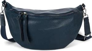 Damen Halbmond Schultertasche groß | Crossbody Umhängetasche Handtasche mit 2 Wege Reißverschluss & verstellbarem Schultergurt 37 x 17 cm, Farbe:Dunkelblau