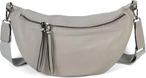 Damen Halbmond Schultertasche groß | Crossbody Umhängetasche Handtasche mit 2 Wege Reißverschluss & verstellbarem Schultergurt 37 x 17 cm, Farbe:Hellgrau