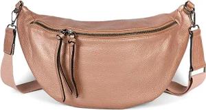Damen Leder Handy Umhängetasche mit genarbter Oberfläche, Reißverschluss, Echtleder Mini Bag 02012374, Farbe:Altrose