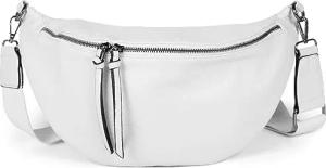 Damen Halbmond Schultertasche groß | Crossbody Umhängetasche Handtasche mit 2 Wege Reißverschluss & verstellbarem Schultergurt 37 x 17 cm, Farbe:Weiß