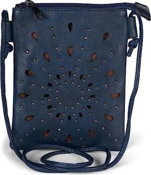 Damen Mini Bag Umhängetasche mit Cutouts in Ethno Blumen Form und Nieten, Schultertasche, Handtasche, Tasche 02012304, Farbe:Dunkelblau