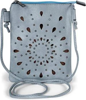 Damen Mini Bag Umhängetasche mit Cutouts in Ethno Blumen Form und Nieten, Schultertasche, Handtasche, Tasche 02012304, Farbe:Jeansblau