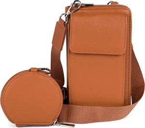 Damen Taschen Set 2-Teilig Mini Bag mit Handy Fach und RFID Schutz, Umhängetasche, Handytasche, Crossbag 02012385, Farbe:Cognac