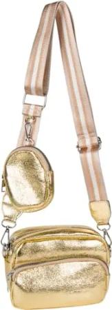 Damen Umhängetaschen Set 2-Teilig, gemusterter Schultergurt und ovale Börse, Rechteckige Crossbody Bag Einfarbig 02012405, Farbe:Gold Metallic