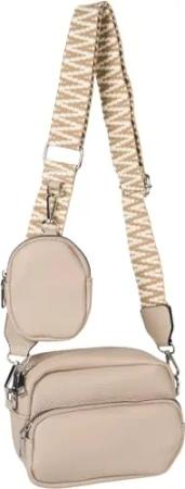Damen Umhängetaschen Set 2-Teilig, gemusterter Schultergurt und ovale Börse, Rechteckige Crossbody Bag Einfarbig 02012405, Farbe:Taupe