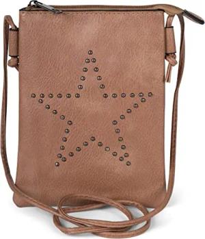 Mini Bag Umhängetasche mit Nieten in Stern Form, Schultertasche, Handtasche, Tasche, Damen 02012235, Farbe:Braun
